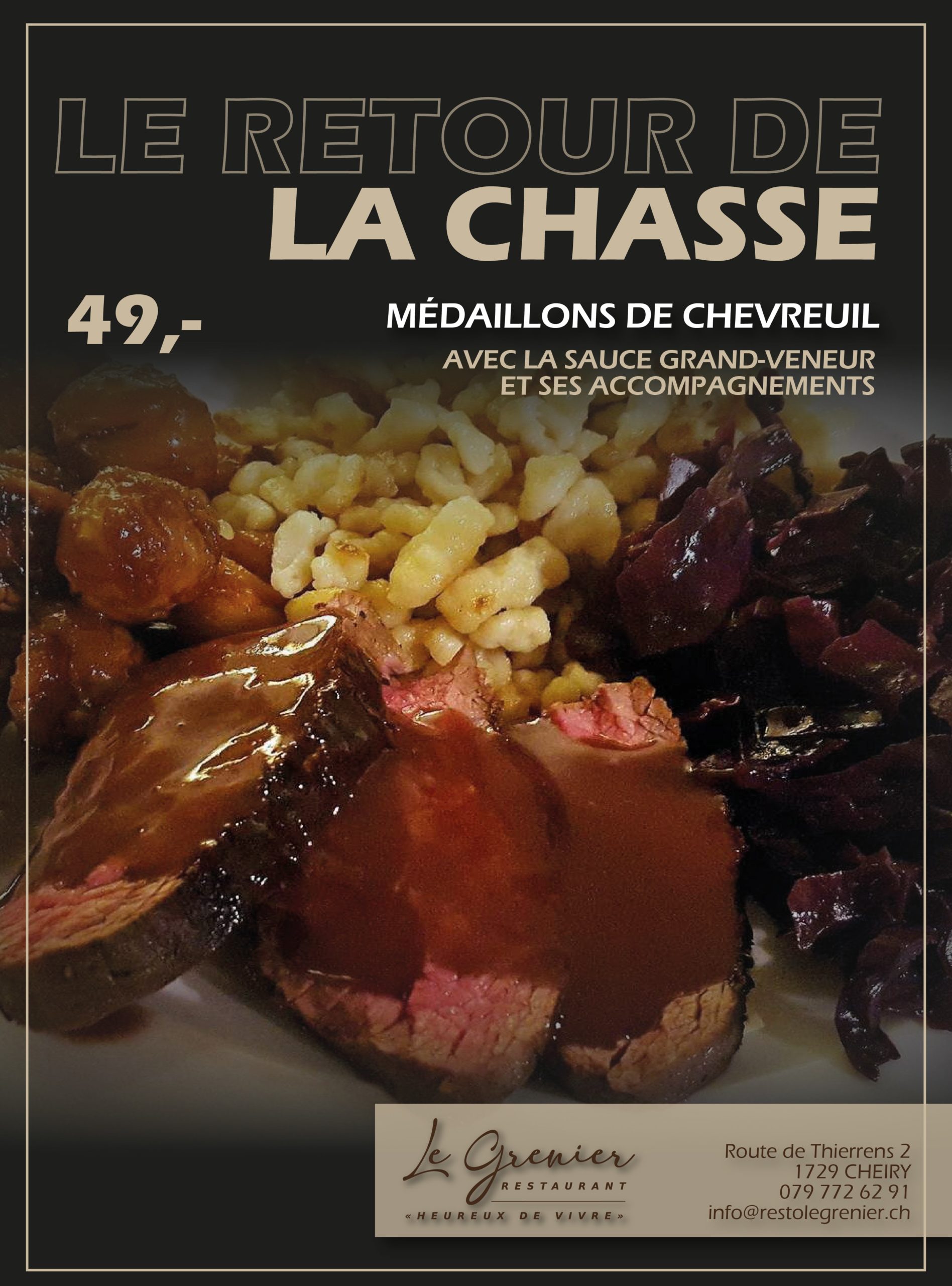 « Venez au Grenier à Cheiry, vous serez heureux de vivre. Laissez vos problèmes à la maison (fous toi de ça) et passez un moment convivial et drôle avec le patron qui est unique. Les bons plats valent le détour. »